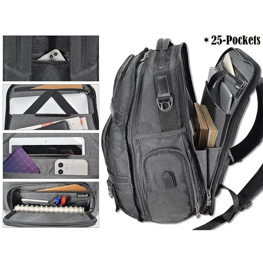 25 Pockets: With 3 compartments and 25 pockets, this men's computer backpack keeps you well organized. - A perfect business backpack for professional men.
